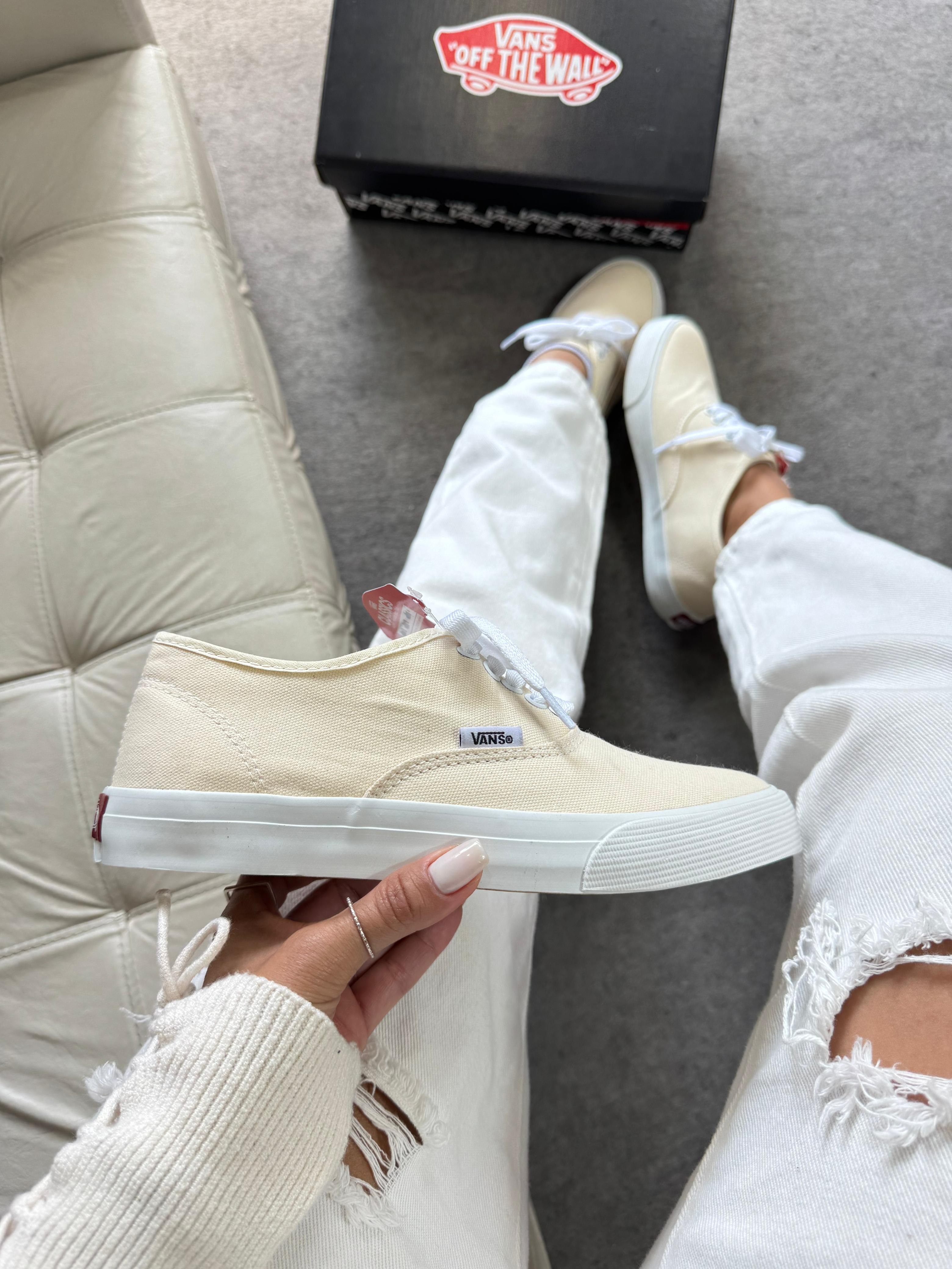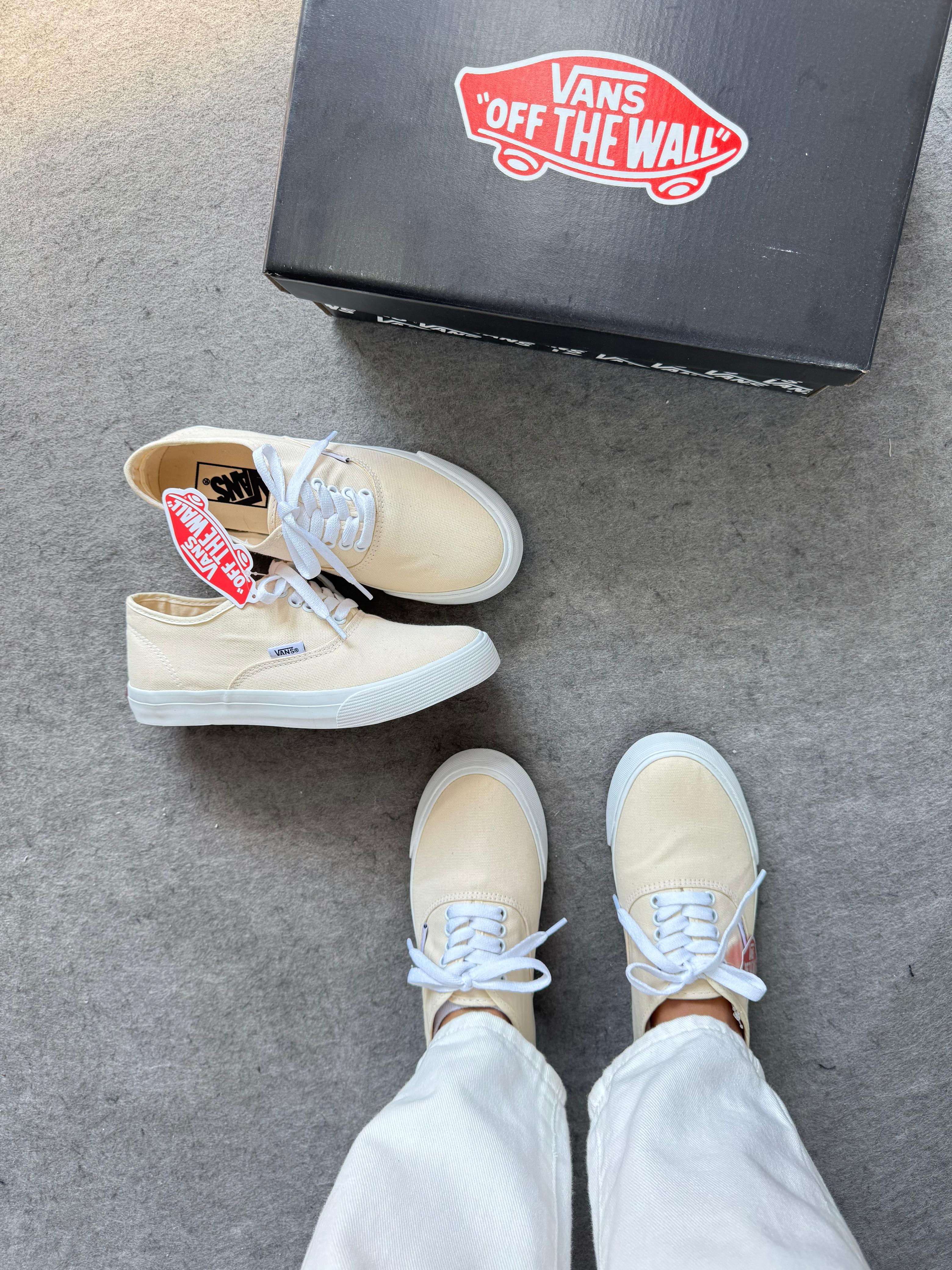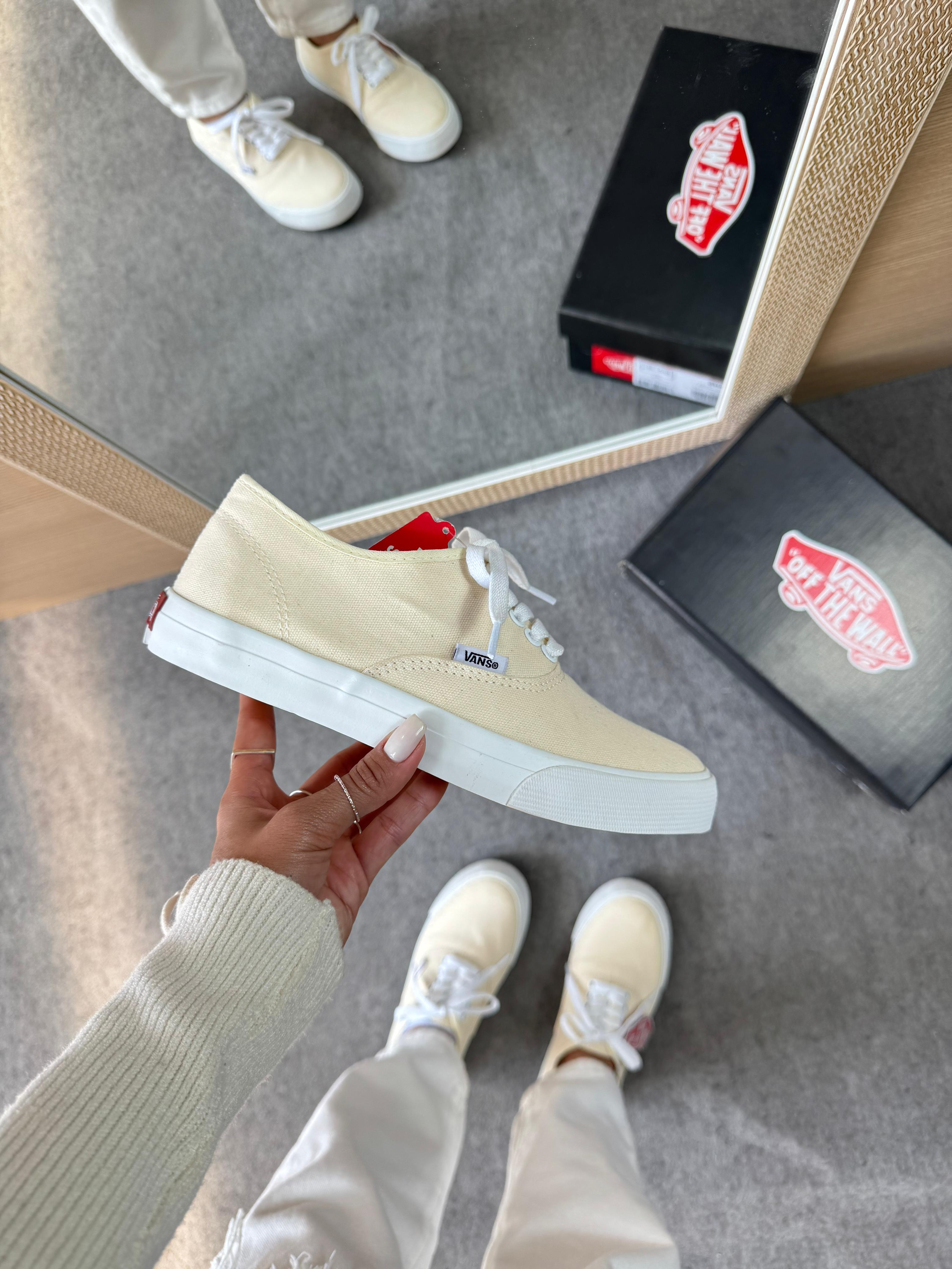 O clássico Vans em um tom natural e suave, perfeito para quem busca um visual clean e versátil.