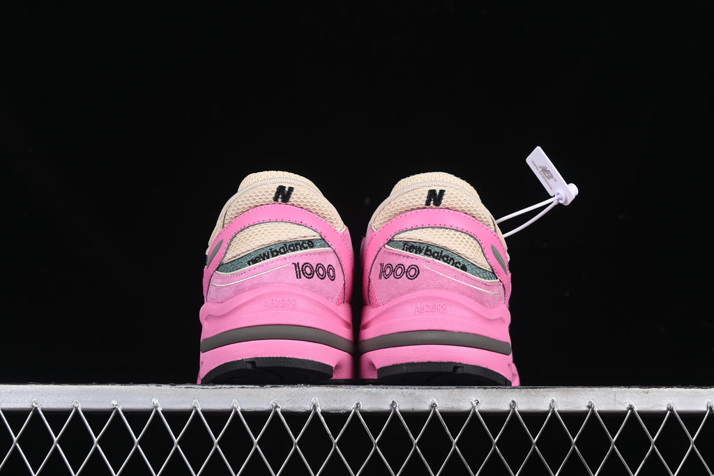 O New Balance 1000 "Real Pink Sandstone" combina a suavidade do rosa com tons terrosos que trazem contraste e modernidade à silhueta.