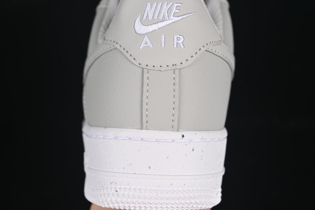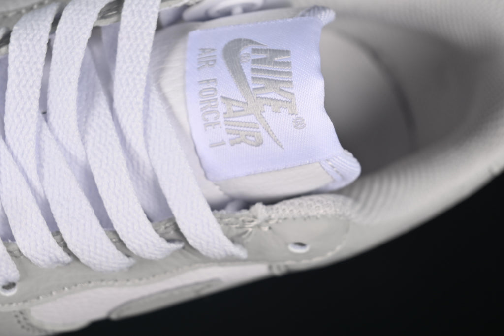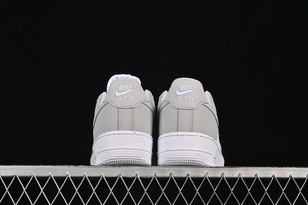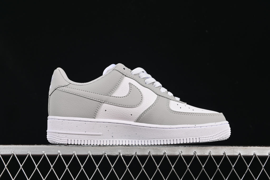 O Air Force 1 '07 Wolf Grey/White apresenta um design clean com cabedal em couro premium na tonalidade cinza "Wolf Grey", complementado por detalhes em branco que conferem um visual moderno e versátil.