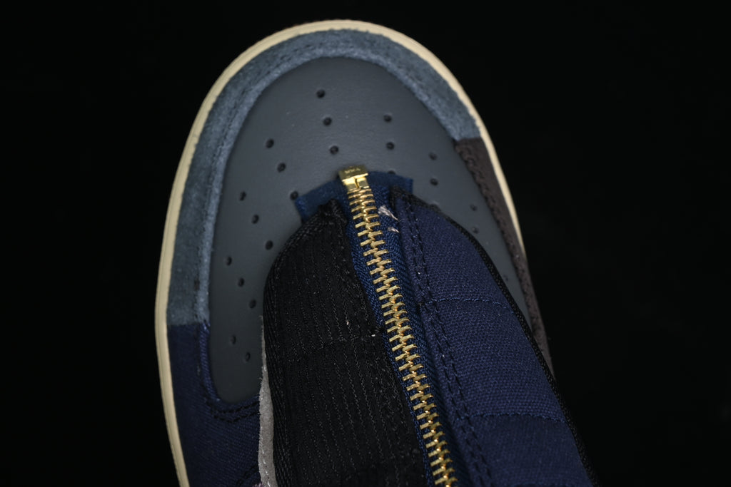 O Air Force 1 Low x Travis Scott "Cactus Jack" mistura materiais como lona, camurça e couro em um design patchwork ousado, que traduz a estética única do rapper. Cada detalhe carrega personalidade, desde os tons terrosos e contrastantes até o zíper removível que cobre o cadarço, reforçando a exclusividade do modelo.