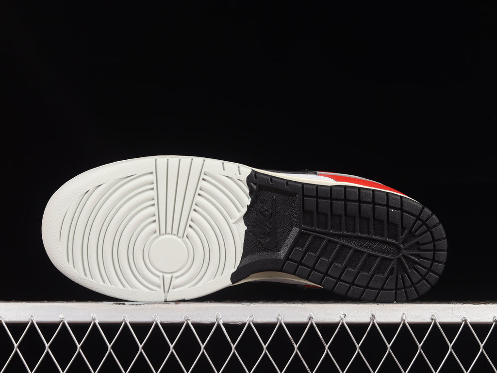 O Nike Dunk Low “Chicago Split” reinventa a icônica paleta do uniforme dos Chicago Bulls com estilo dividido: base branca em couro premium, overlays em University Red e detalhes exclusivos como o Swoosh em preto e prata, e sola com tons “split” que alternam preto, cinza e branco.