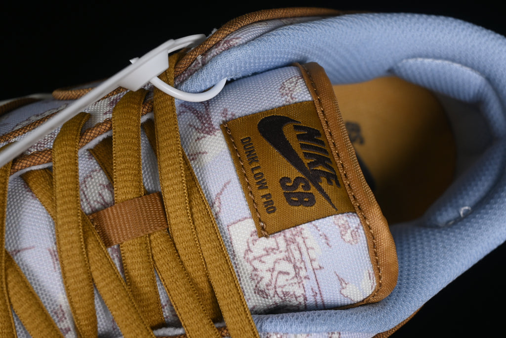 O Nike Dunk Low “City of Style” traz à tona uma estética sofisticada e culturalmente rica: o cabedal em lona é revestido com uma estampa “toile de Jouy” inspirada nas paisagens e construções de Paris, combinando tons como cinza-football, coco milk, khaki e detalhes em dourado. Cada passo revela textura, narrativa e presença.
