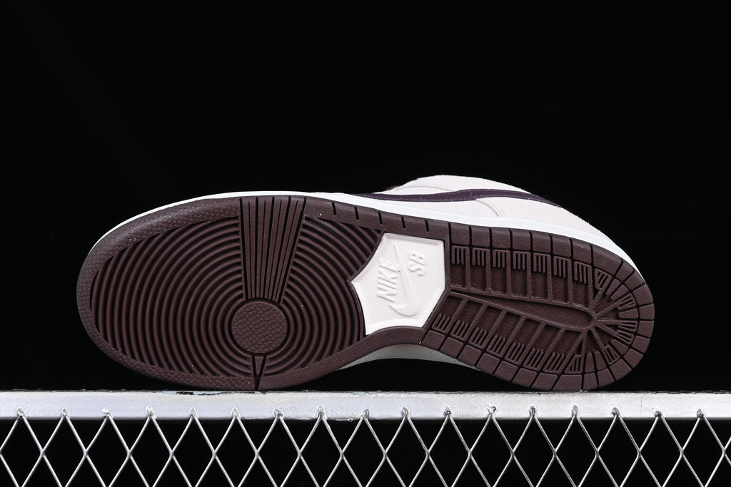 O “Desert Sand / Mahogany” apresenta uma combinação elegante de tons neutros e terrosos que elevam o visual clássico do Dunk. A base em Desert Sand cria um fundo suave e versátil, enquanto as sobreposições em Mahogany — um marrom profundo e quente — adicionam contraste e sofisticação.