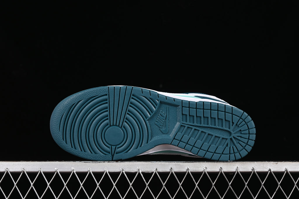 O “Geode Teal” traz uma combinação marcante de azul petróleo e cinza suave, criando um contraste elegante que reflete perfeitamente o espírito urbano e moderno do Dunk.