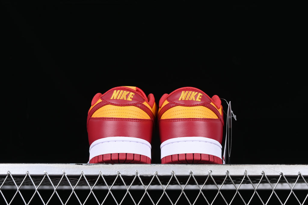 Com uma paleta ousada e vibrante, o “Midas Gold” combina tons de dourado e vermelho universitário em um visual que irradia energia e confiança. Inspirado nas cores intensas da herança esportiva da Nike, o modelo se destaca pelo contraste equilibrado entre o amarelo-ouro e o vermelho profundo.