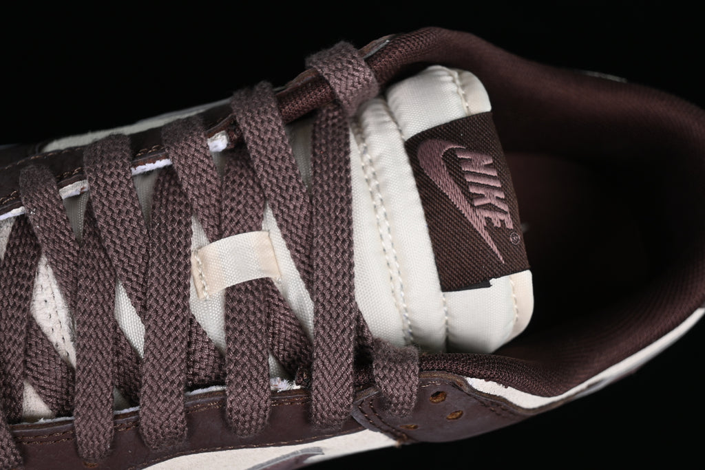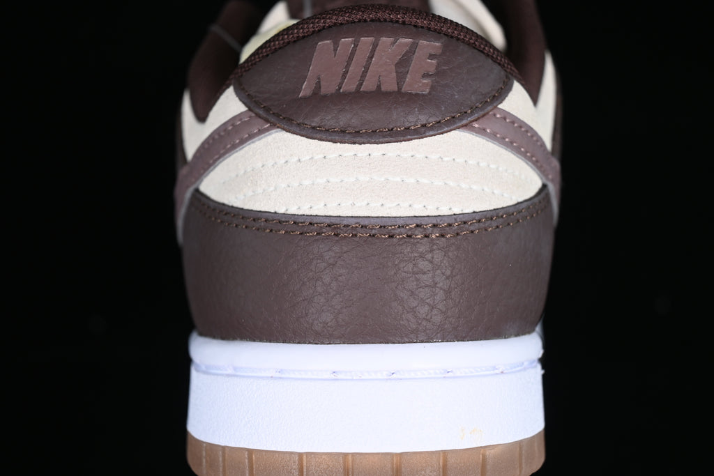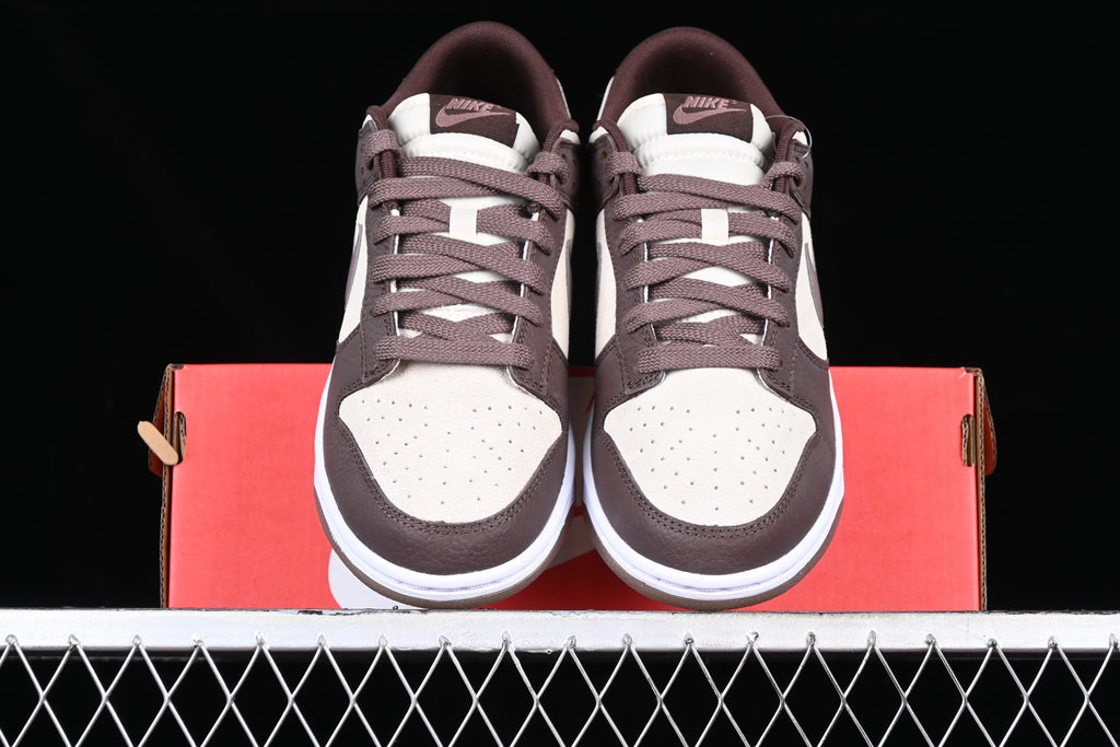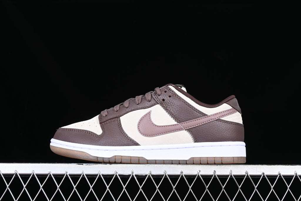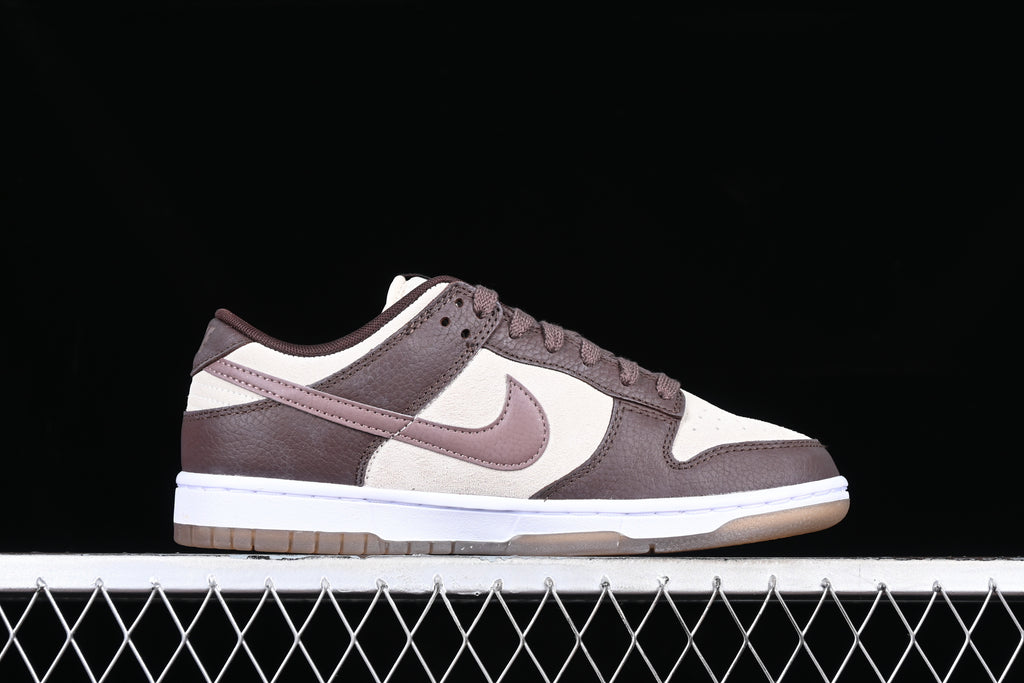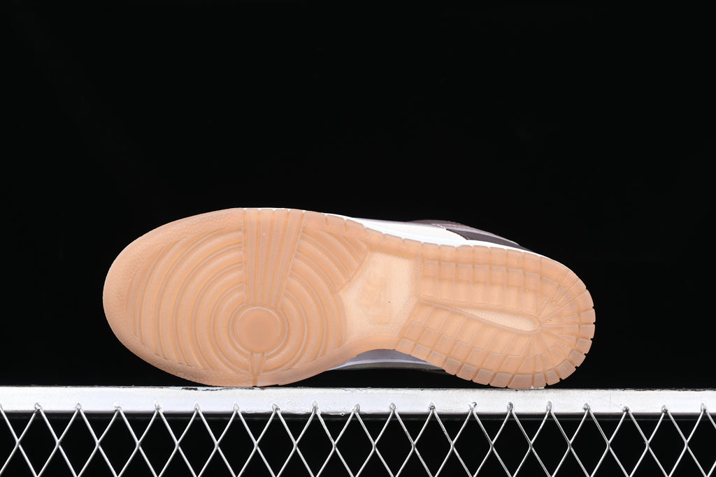 O “Plum Eclipse” apresenta uma combinação sofisticada de tons terrosos e rosados que elevam a estética clássica do Dunk. A base em Pale Ivory contrasta com sobreposições em Plum Eclipse, um tom ameixa profundo que adiciona elegância e presença ao visual.