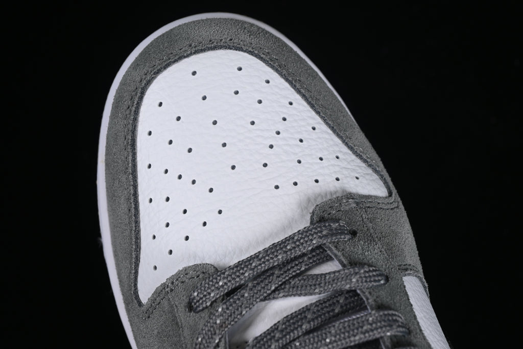 O Nike Dunk Low “Smoke Grey Gum 3M Swoosh” combina um cabedal branco em couro premium com sobreposições em camurça cinza suave, enquanto o icônico Swoosh em material 3M reflete a luz — detalhe que transforma o modelo de clássico a colecionável.