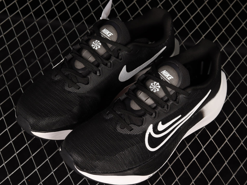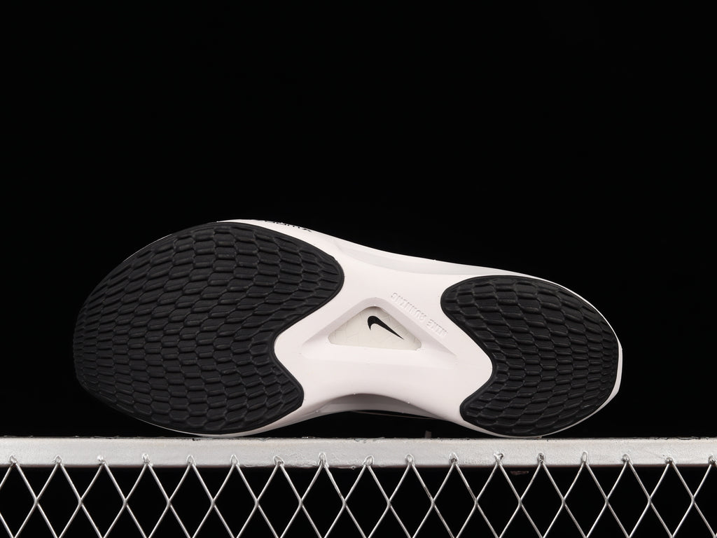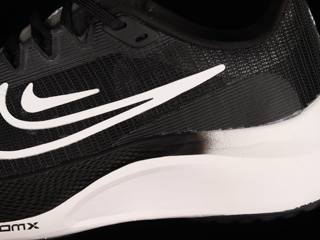 O “Black / White” eleva a silhueta Zoom Fly 5 com uma paleta clássica: o cabedal em mesh preto oferece leveza e respirabilidade, enquanto os detalhes em branco trazem contraste e definição ao design.