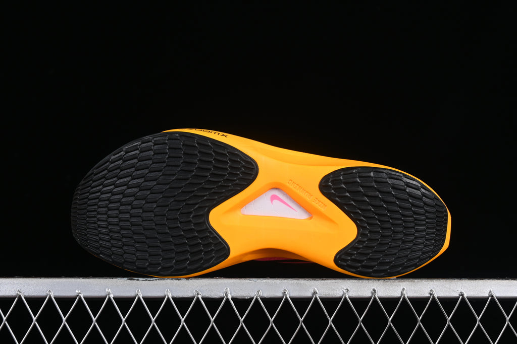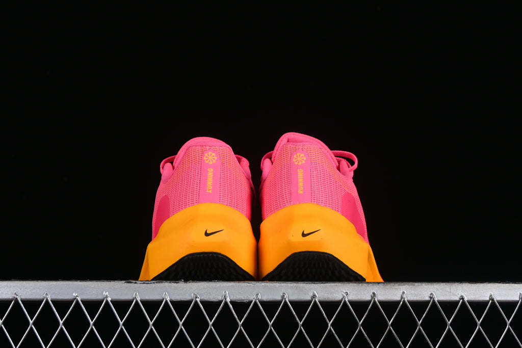 O “Hyper Pink / Laser Orange” combina o desempenho ágil da Zoom Fly 5 com uma paleta vibrante e ousada. A malha respirável em rosa-neon oferece leveza e ventilação, enquanto os detalhes em laranja laser trazem um toque energético e moderno.